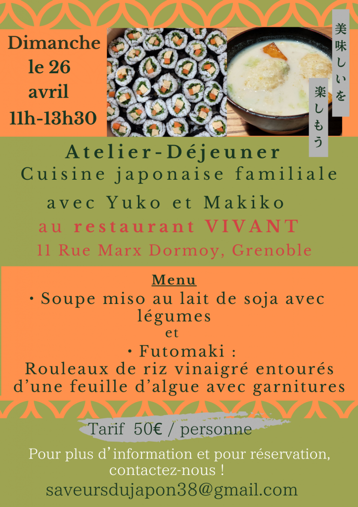 Cuisine familiale japonaise par Yuko et Makiko, avec des produits de Vivant (miso, vinaigres…)