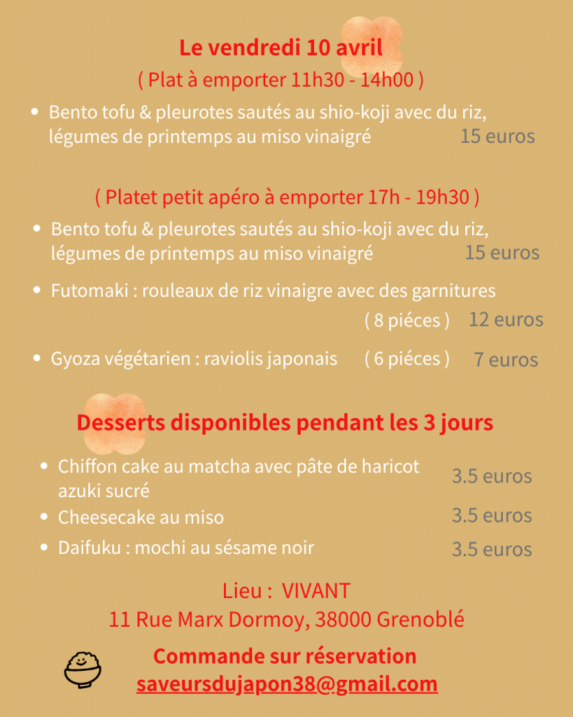 ⚠️ Quantités limitées – À emporter uniquement ! ✏️ Commandes sur réservation : saveursdujapon38@gmail.com.